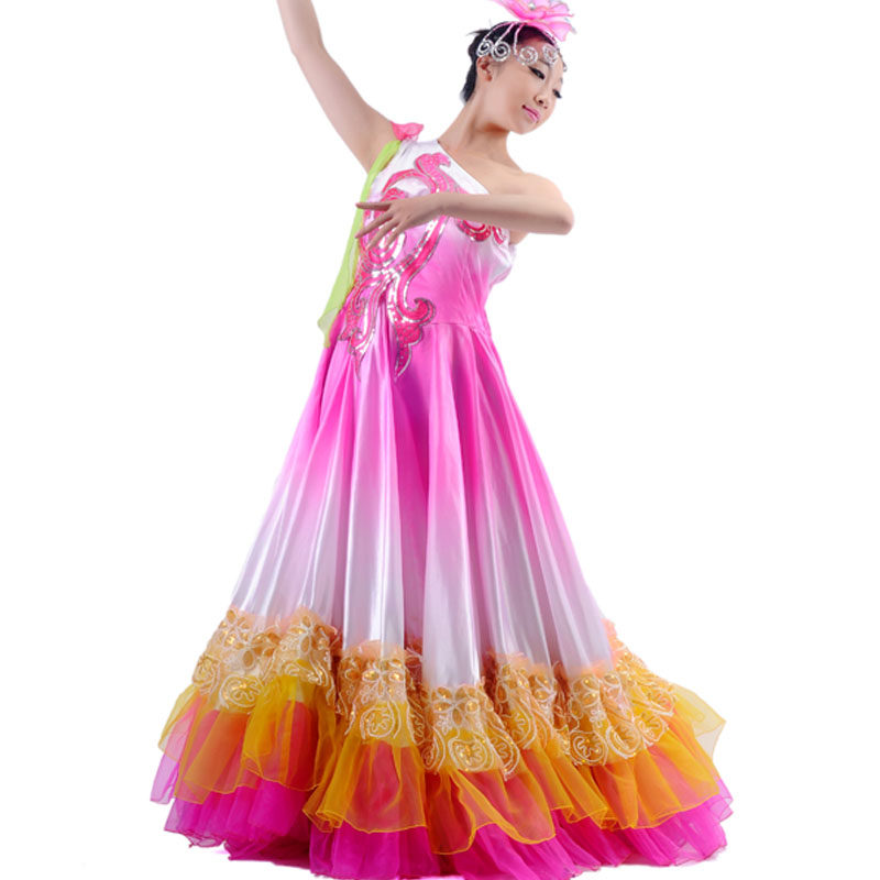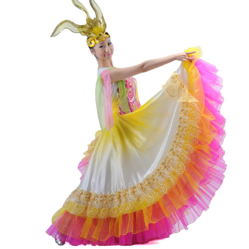 Opening dance big swing skirt transition color big skirt stage performance costume multi-color 720 degree dance costume