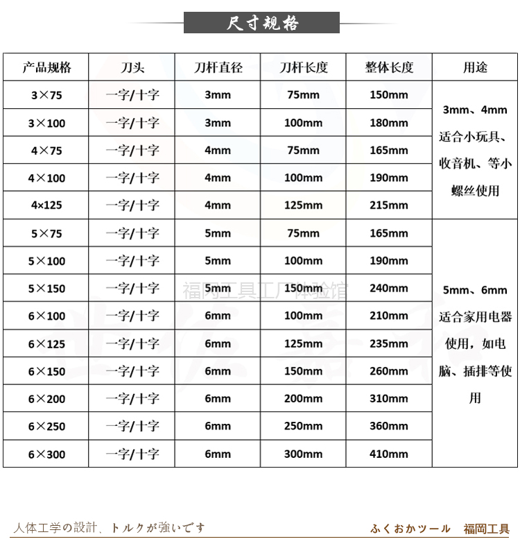 Japan Fukuoka tool non-slip screwdriver screwdriver batch 11-character multi-function magnetic labor-saving imported quality