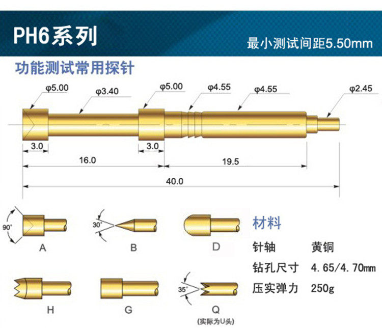 PH - 6H 6A Huarong Probe Integrated Test Probe for 9 claw - plume 5 0MM spring roof needle