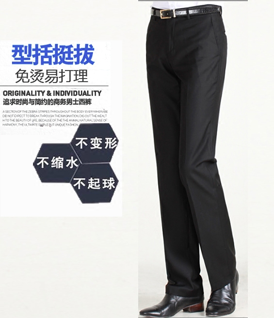 Business work clothes free of ironing straight cylinder Western-style pants Men's black anti-wrinkle Western pants are loading the men's class long pants