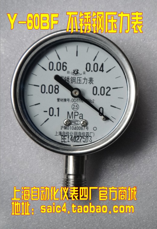 Shanghai automation Instrument Factory four Y-60BF stainless steel pressure gauge 2 5 level M14*1 5