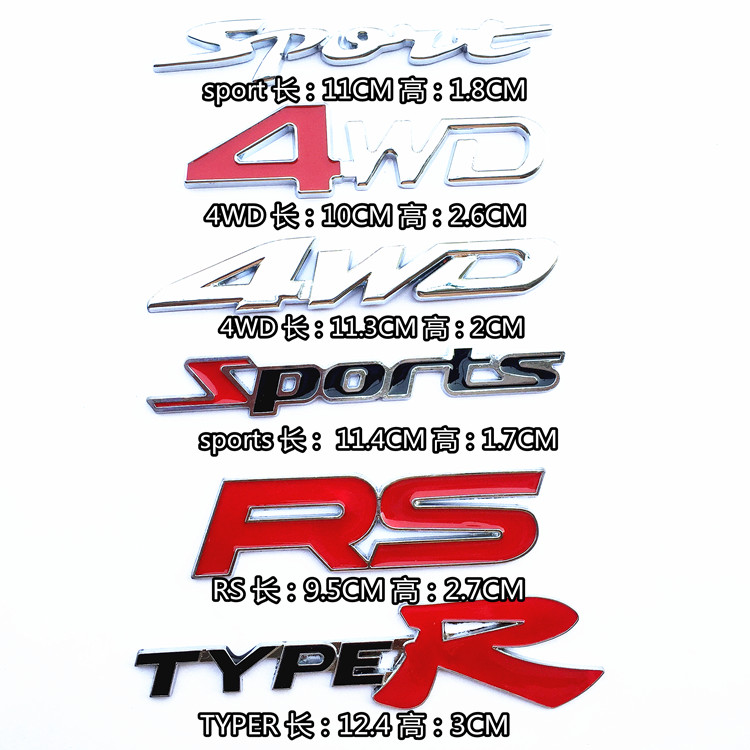 Personality RS pure metal stereo 4WD Four wheel drive reminder logo car Sticker Decorative sticker
