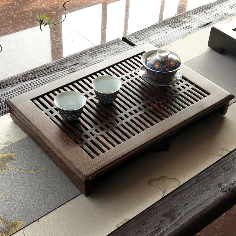 Chicken wing wood tea tray Small household tea table Simple Chinese drawer type drainage water storage mini leisure solid wood tea tray