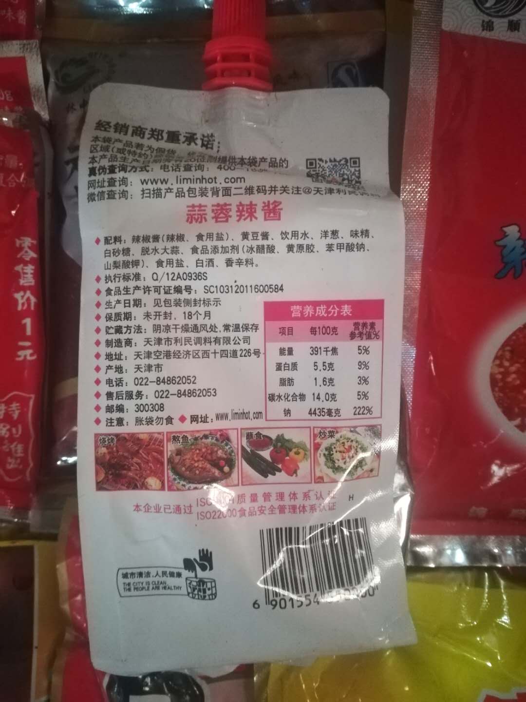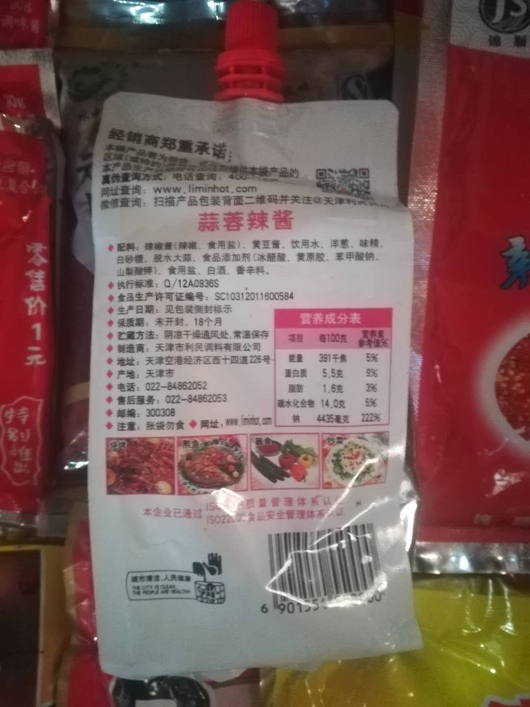 Tianjin Limin Garlic Chili Sauce 450g Family Pack BBQ Hot Pot Dipping Sauce Baked Cold Noodles Mixed Noodles Dipping Sauce