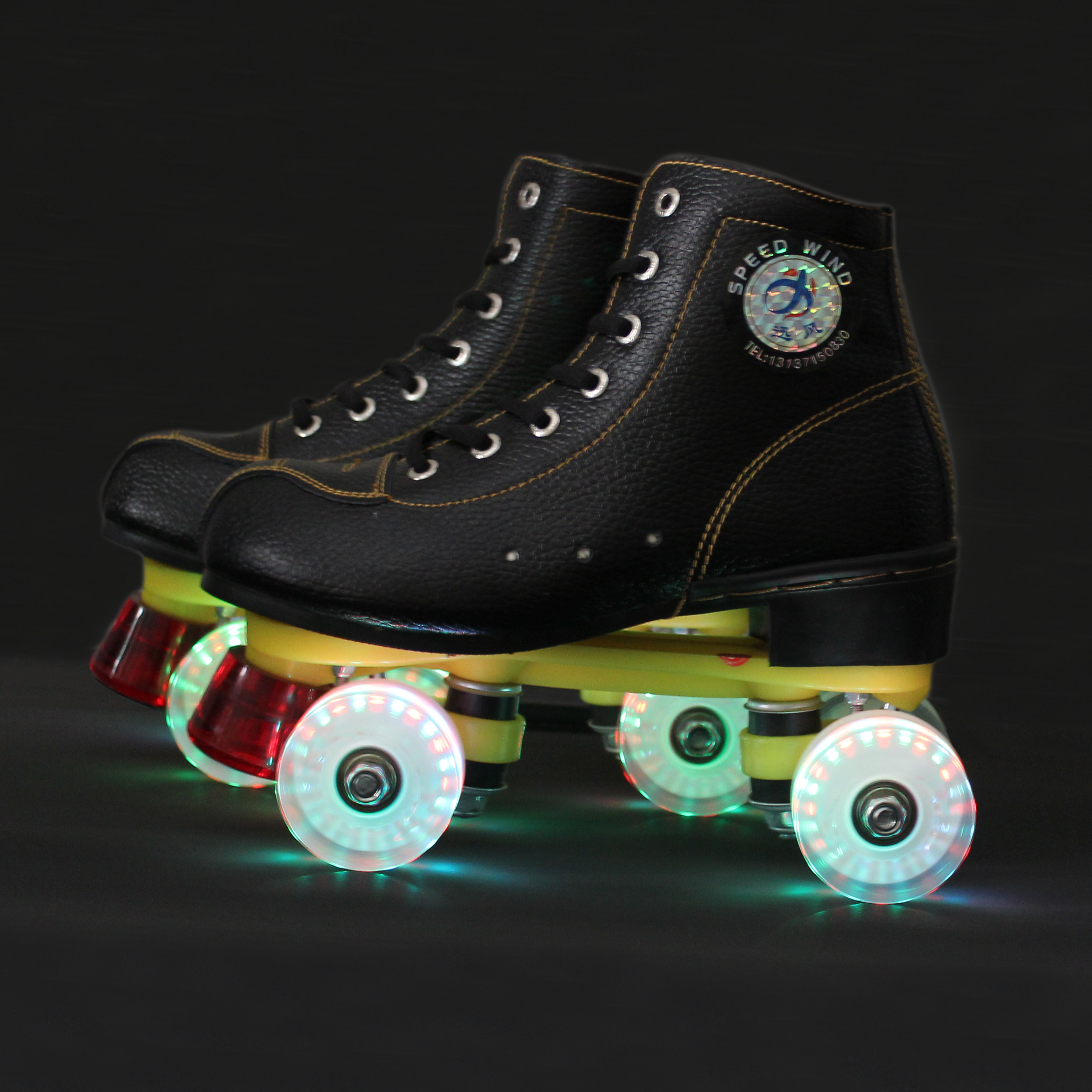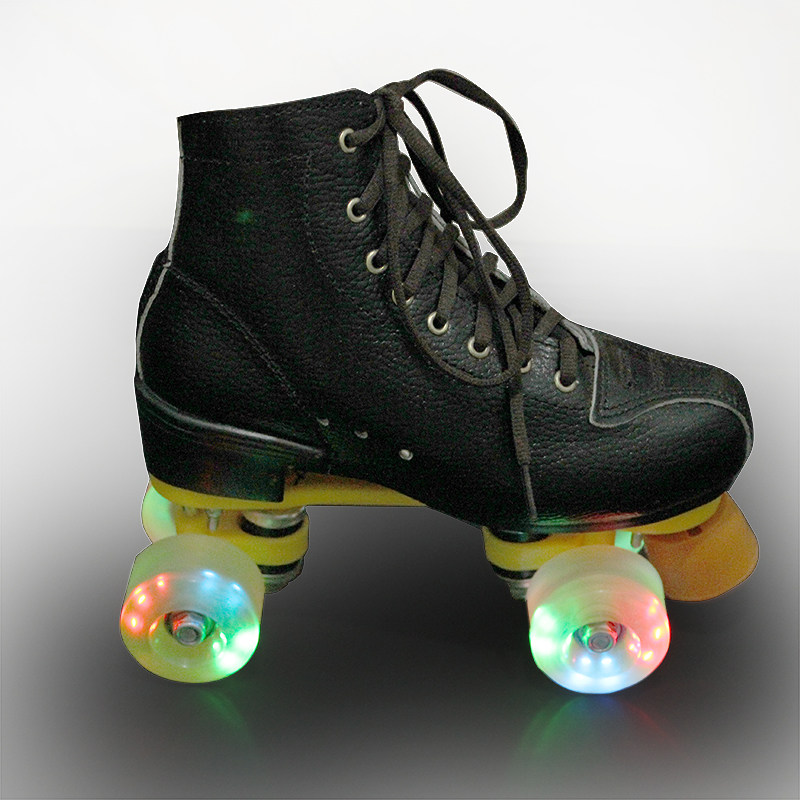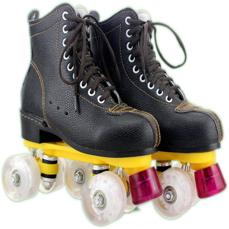 Adult double-row hockey skates children male and female pattern PU four-wheel wear-resistant cowhide skates roller skates accessories