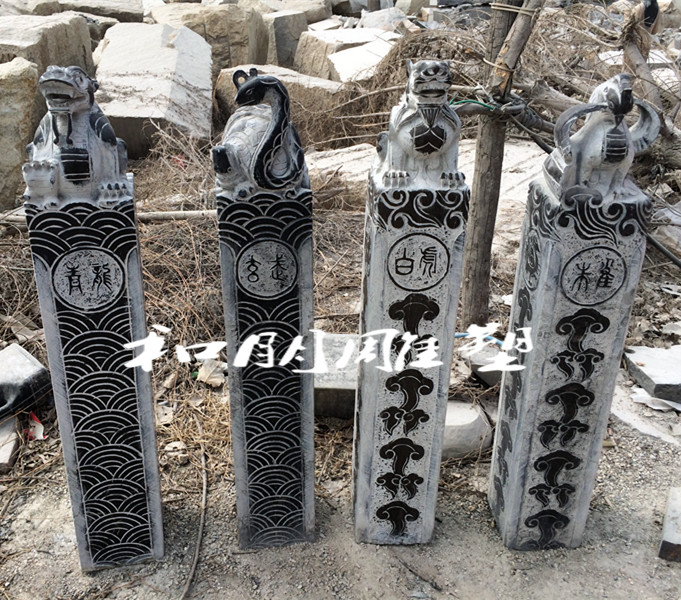 Bluestone Stone Carving Four Divine Beasts Hitching Horse Stake Carving Stone Lion Hitching Horse Pillar Nine Dragons Hitching Horse Stone Marble Suzaku Monkey