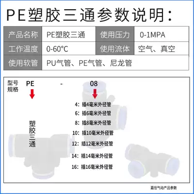 Plastic T-type tee PE4 plastic T-type tee PE6 plastic T-type tee PE8 plastic T-type tee PE10 plastic T-type tee PE12 plastic T-type tee PE14 plastic T