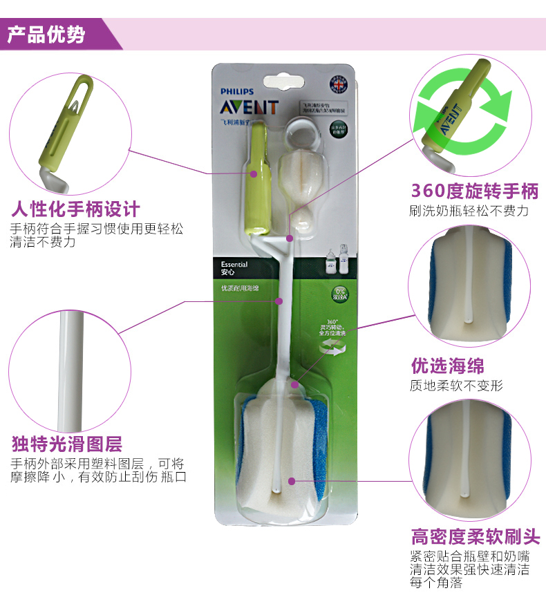 Philips avent sponge bottle brush nipple brush set brush 360 degree free rotation brush drinking cup