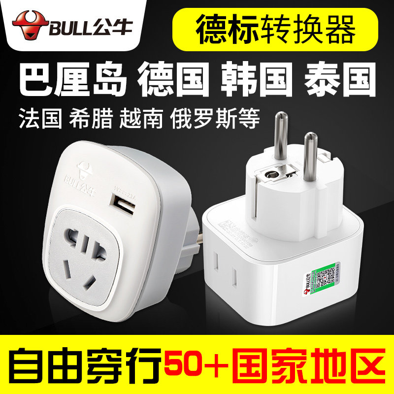 Bulls German standard European standard conversion plug converter charging head Russia Europe Thailand Bali Korea Vietnam