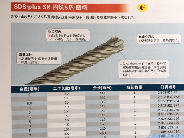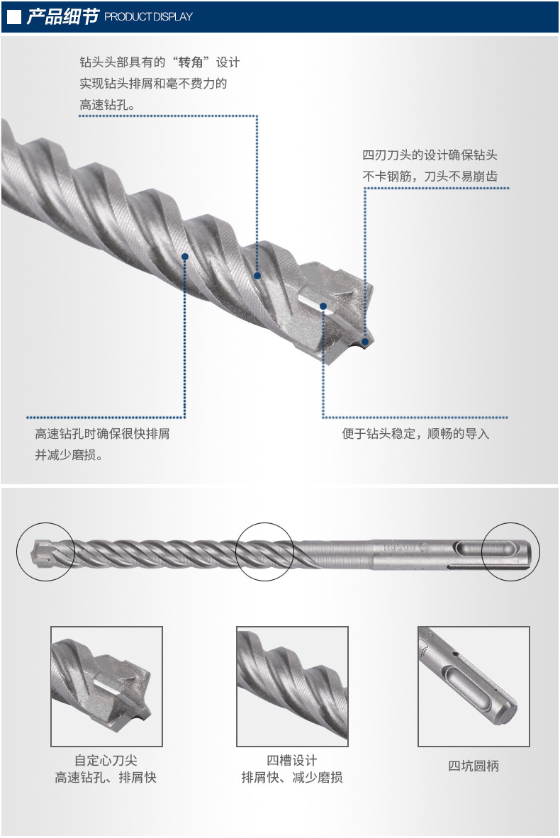 Bosch SDS-plus5 series of round four-pit round handle two pits two-groove electric hammer drill reinforced concrete drill with four blades 6-16