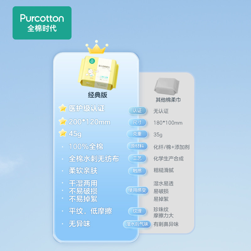 Cotton era baby cotton soft towel dry and wet towel for children special 100 draws*6 packs