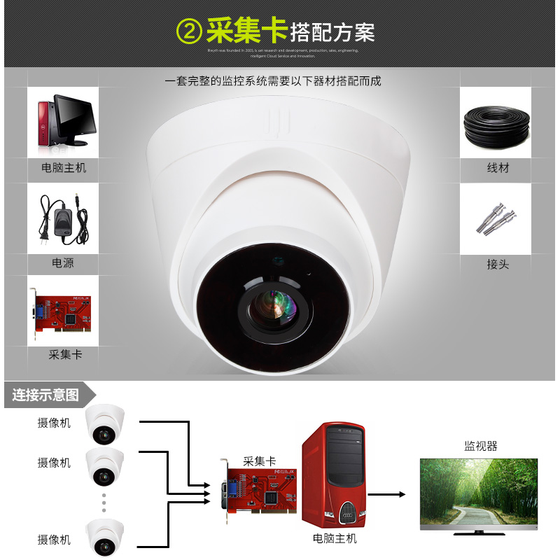 Revis surveillance camera Dome HD 1200 line analog infrared night vision home wide angle camera