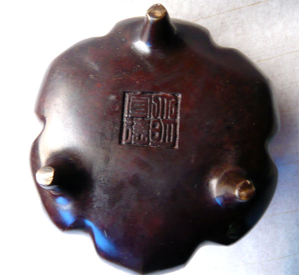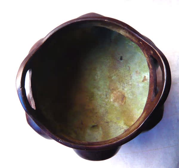 Red copper color pure copper incense stove 1 5 catty of high imitation three foot double ear lotus petal big Ming Xuande stove
