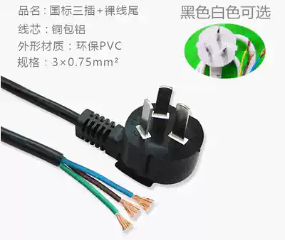 National standard power cord three-hole 3-core 0 75 square host computer power cord three-core plug bare tail cable