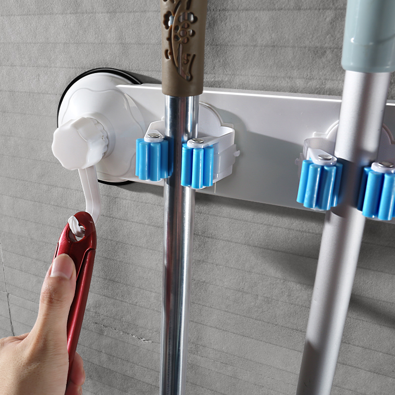 Powerful suction cup mop hook Hole-free hanging mop rack Wall-mounted mop shelf Mop storage shelf Mop clip