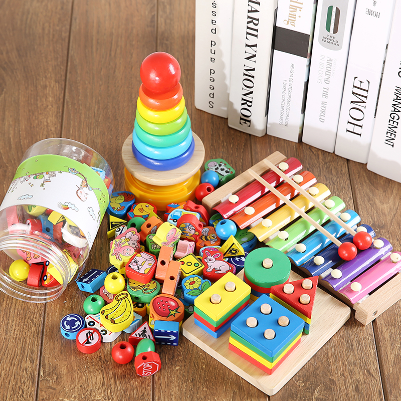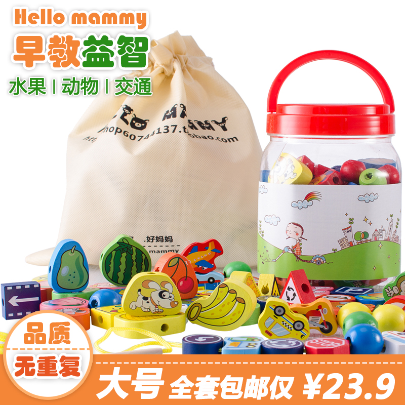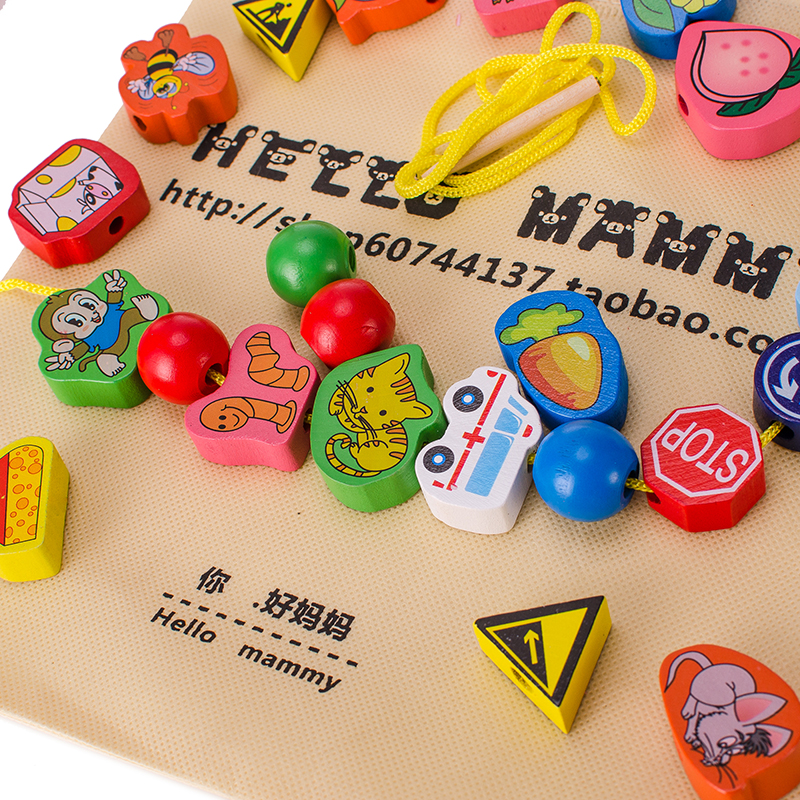 Large children's beaded toy baby amblyopia threading beads wooden early education educational toy 0-3 years old