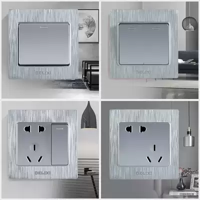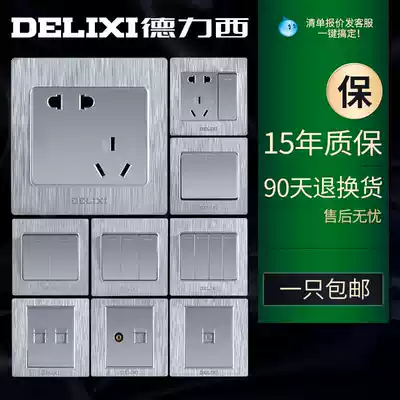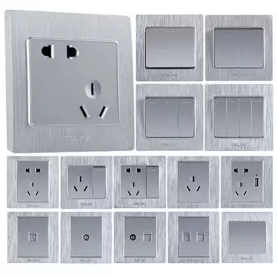 Delixi household concealed wall panel with switch socket open five holes 86 type porous USB brushed silver