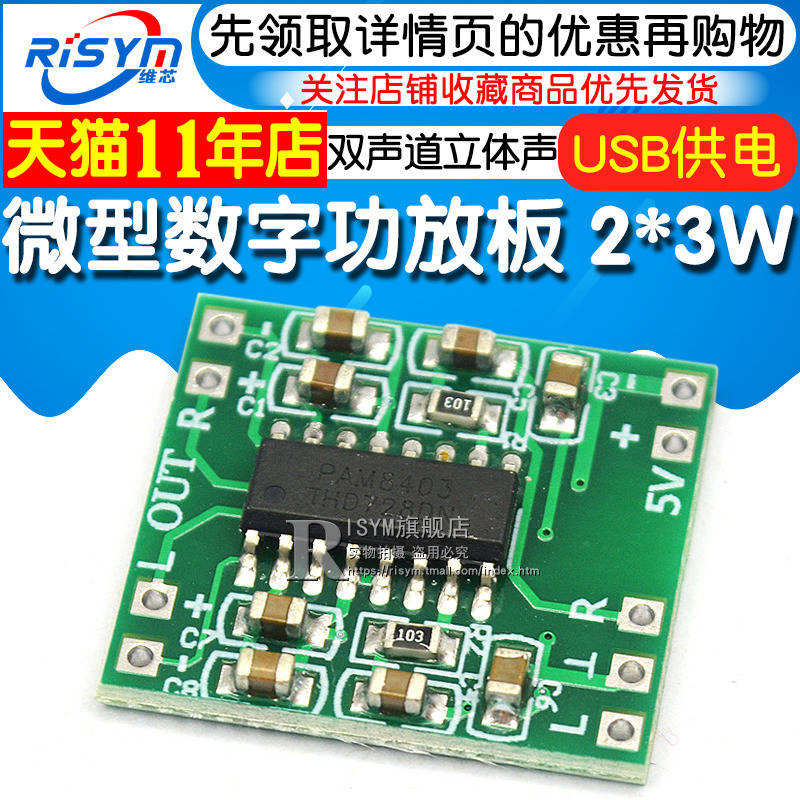 Micro digital power amplifier board 2*3W Class D PAM8403 power amplifier module 2 5~5V small power amplifier board Mini audio circuit board accessories Power amplifier block Audio amplifier diy can be USB