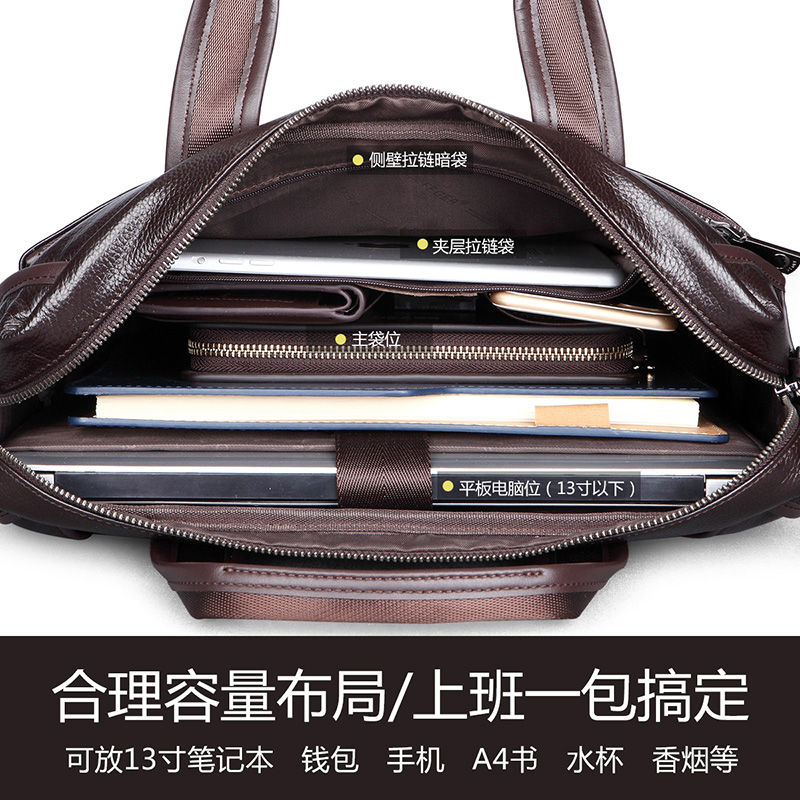 Men's handbag men's handbag genuine leather single shoulder inclined shoulder bag computer bag genuine leather bag men's texture fashion business briefcase