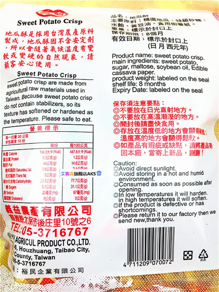 Taiwan Traditional Cuisine Yongbo Sweet Potato Crisp (original flavor) 300g