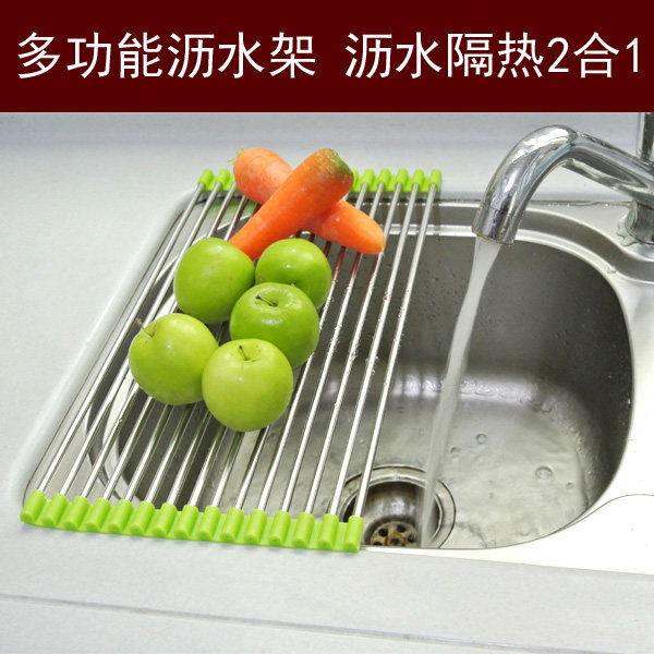 Foldable high quality silicone stainless steel drain rack kitchen sink dish rack fruit vegetable drain rack
