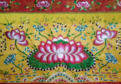 Embroidered Lotus table apron Taiwanese front table cloth for tablecloth Buddha tablecloth home Buddha cloth satin yellow cloth direct sales
