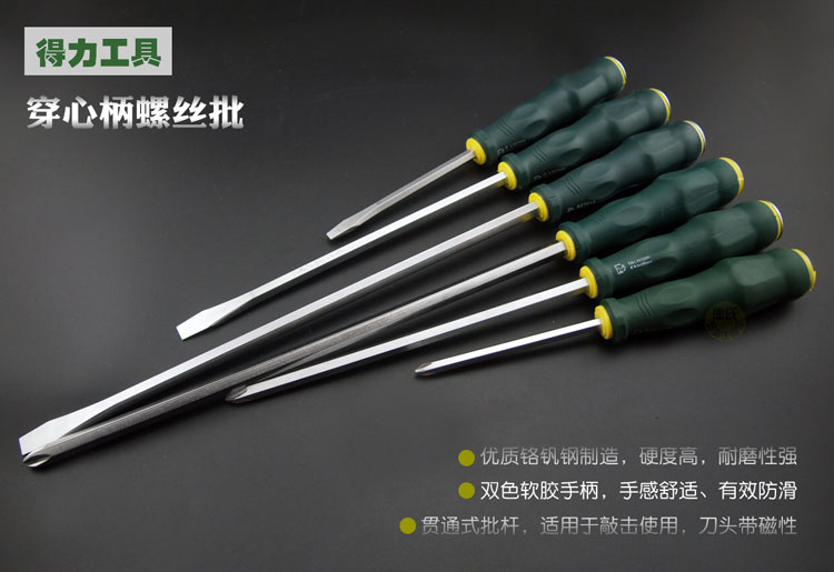 Deli can tap through the heart screwdriver Extended through the heart screwdriver with magnetic cross word flat mouth can hit the screwdriver