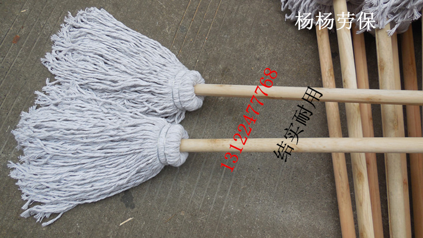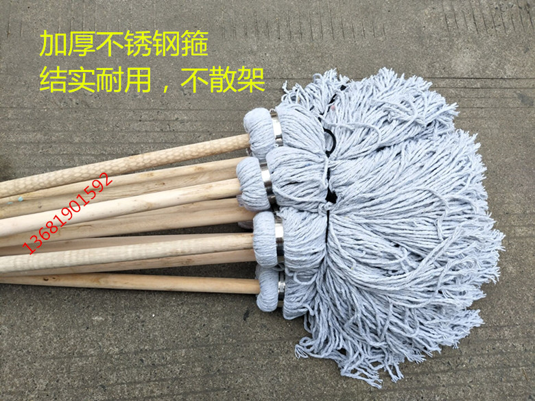 Full cotton white line mop pure cotton beige water suction ground drag old lengthened solid wood rod round head wood handle increased