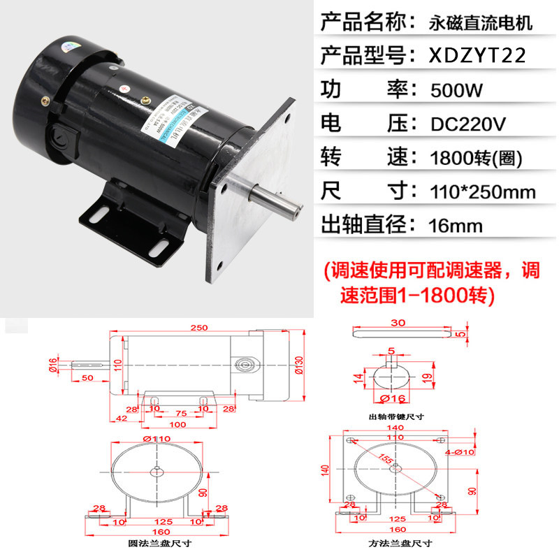 220V permanent magnet DC motors 500W motors 1800 rpm throttle motors Full copper high-power big torque motors