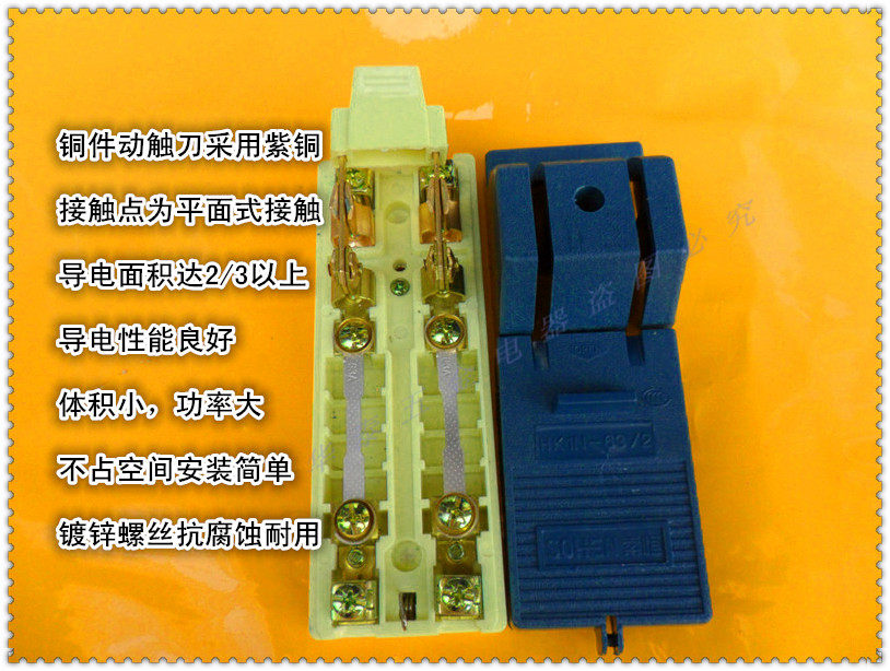 Single header 220v63A copper knife switch open load switch HK1N-63 2 Nanshi Sauheng household spot