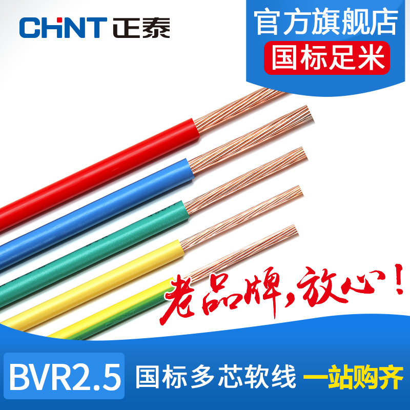 Zhengtai standard cable Copper core wire Multi-strand flexible wire BVR2 5 square 100 meters copper wire Household home improvement wire