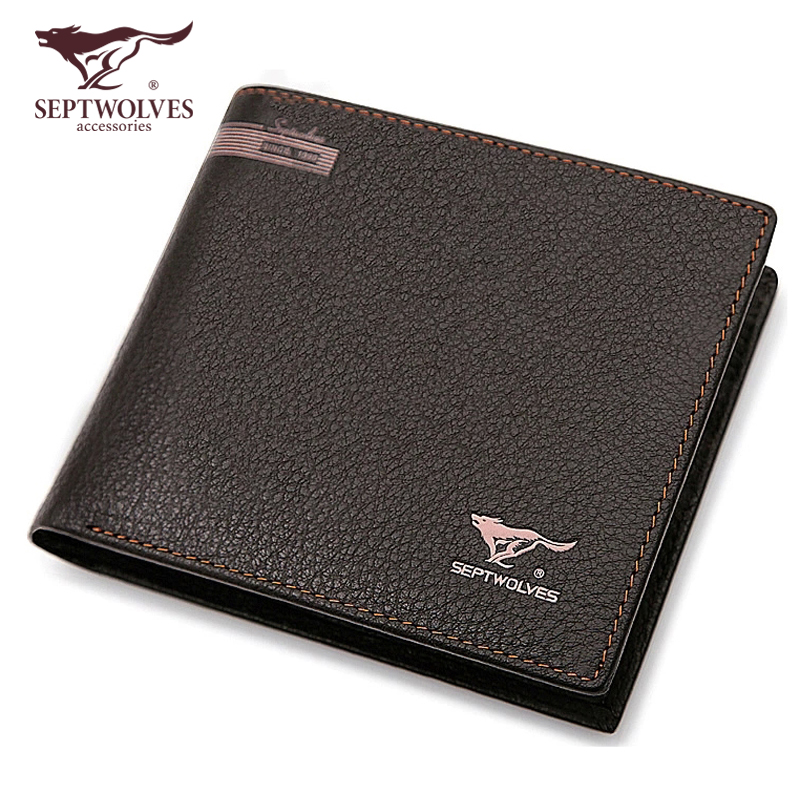 Counter seven wolves men's wallet cowhide wallet brand men's wallet genuine leather wallet short section qianbao