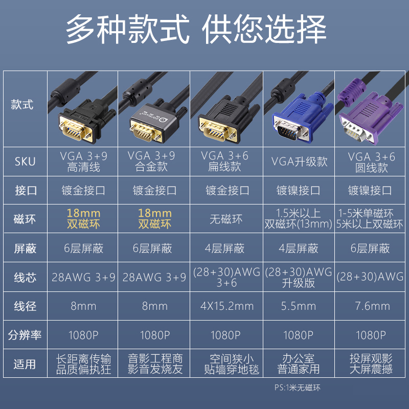 VGA3 5 high-quality line upgrade (home recommendation) VGA3 6 high-quality line flat line (wall recommendation) VGA3 9 high-quality line aluminum alloy (project recommendation)