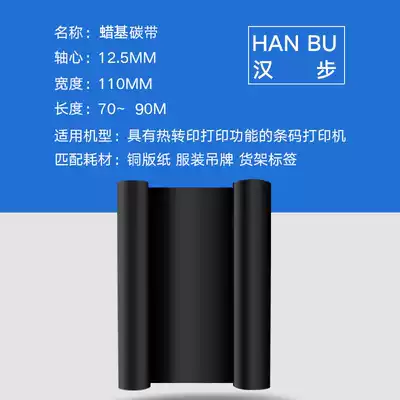 Hanbu enhanced wax-based width 110*70m 90m ribbon ribbon barcode printer Wax-based label Small reel ribbon Zebra gk888t gt800 gt820 Label