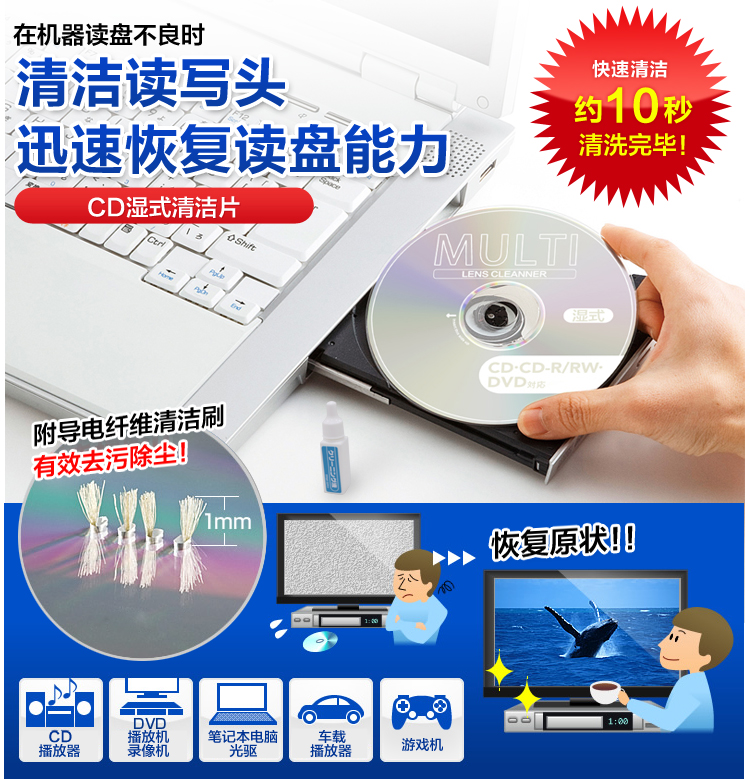 Blu-ray dry style (cleanable CD VCD DVD Blu-ray PS XBOX) (original origin