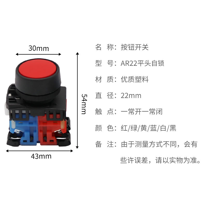 Hot pin Self-lock button switch AR22F5R-11R G Y bore 22mm red green yellow open one closed