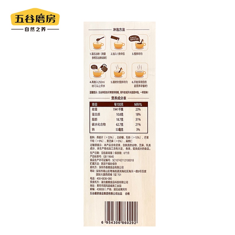 Five Valley Grinding House Mango Oat Oat Five Valley Mate Oatmeal Wheat Flakes Ready-to-eat Drink Grain Nutritious Breakfast Food Meal