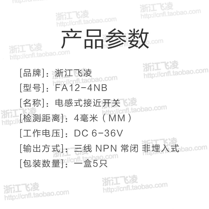 (Zhejiang Feiling) Inductive proximity switch FA12-4NB three-wire NPN type normally closed proximity sensor