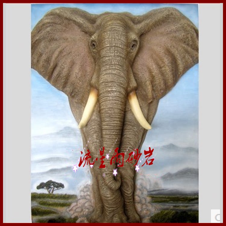 Customized sandstone relief Southeast Asia elephant glass sandstone steel sculpture background wall mural hotel home decoration materials
