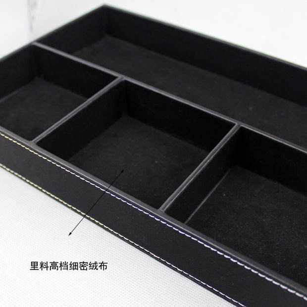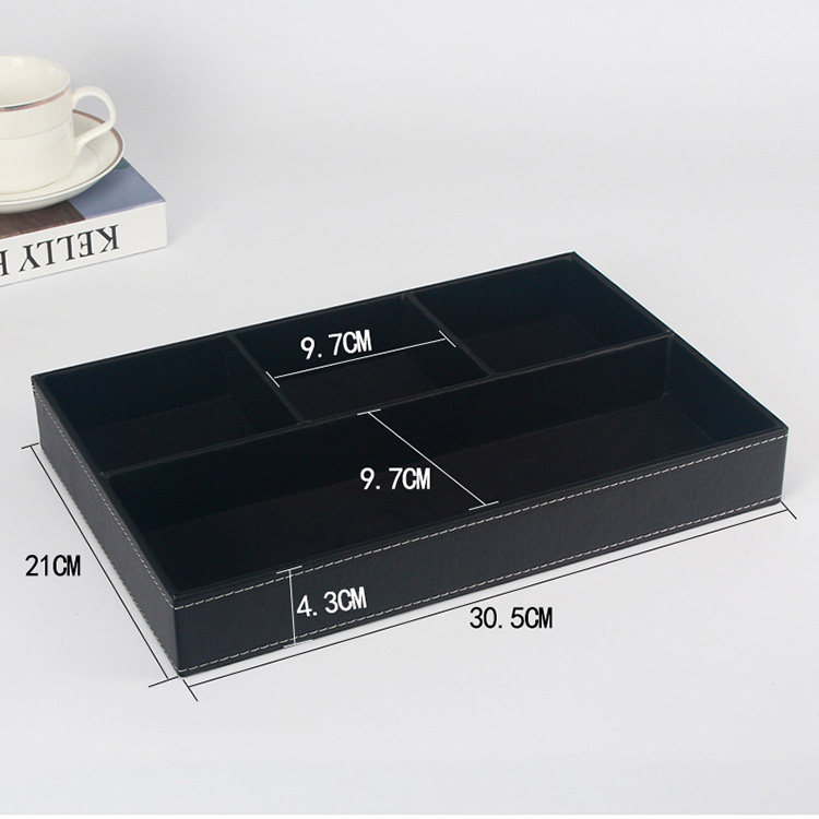 Lilan fashion leather office stationery storage box plate Creative wooden desktop storage finishing multi-grid classification Korea