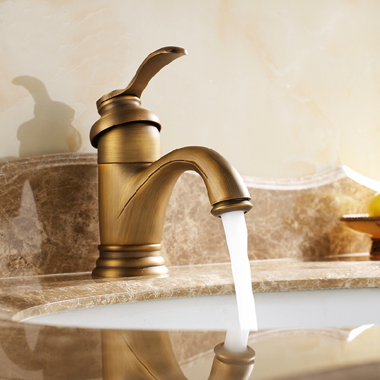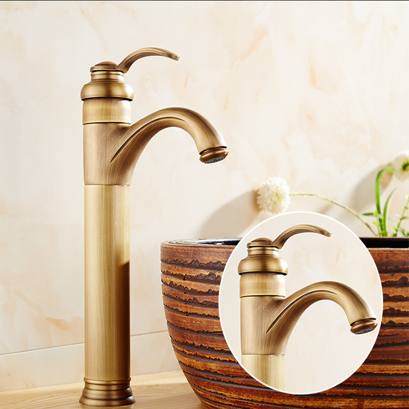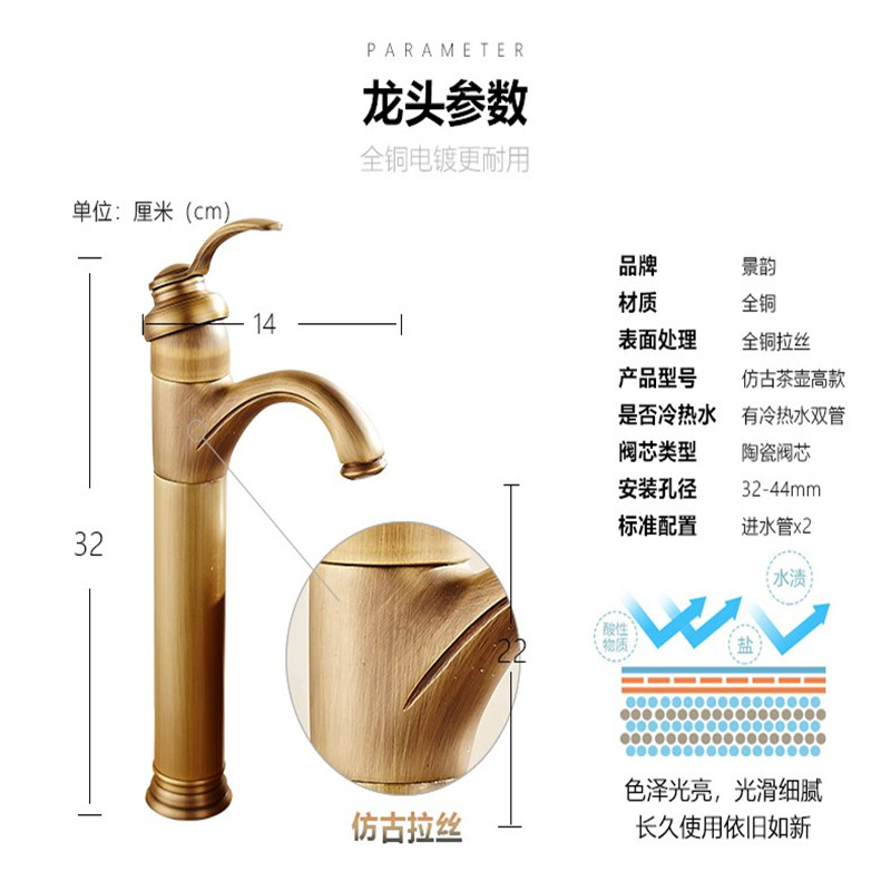 Eurostyle pure copper antique tap teapot surface basin hot and cold water fine copper single-hole tap ceramic table basin distribution tube