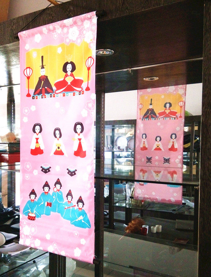 Ming Prince with stick Japanese cuisine Dining room door curtain Korean decorative cloth curtain Hanging curtain Half curtain hanging painting