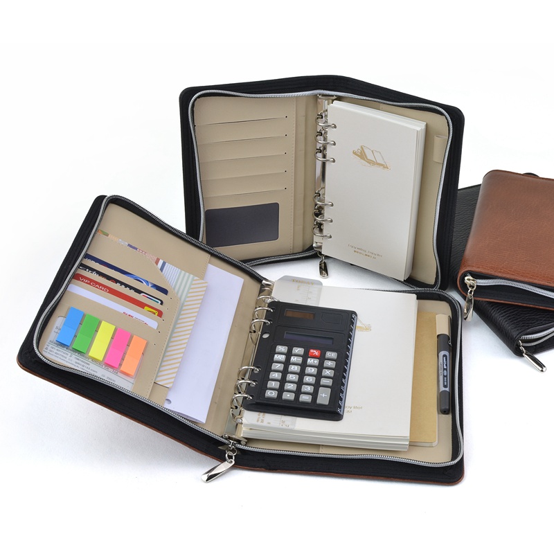 Business zipper loose-leaf notebook zipper bag notepad folder with calculator customizable LOGO