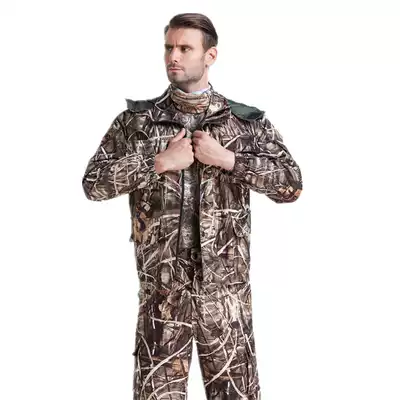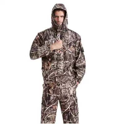 Outdoor mountaineering camping men's camouflage suit Bionic reed hunting camouflage fishing suit Large size multi-pocket waterproof