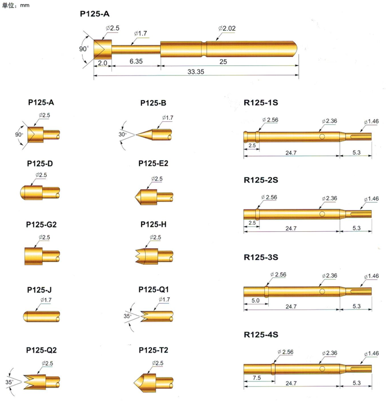 P125-E Huarong Probe 2 5mm Conical Head Test Needle 2 0mm Spring Electronic thimble quality assurance