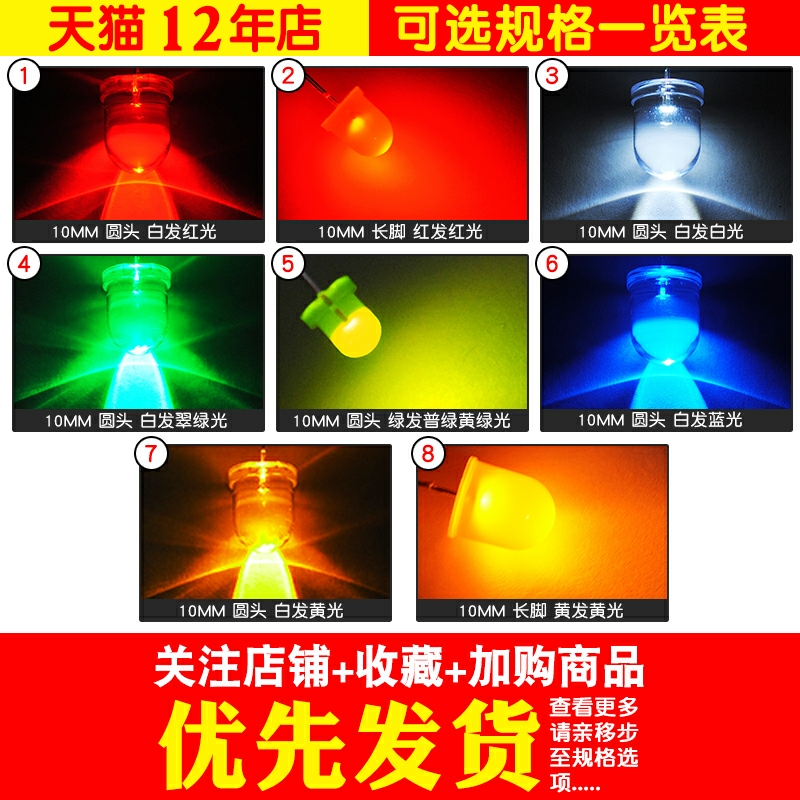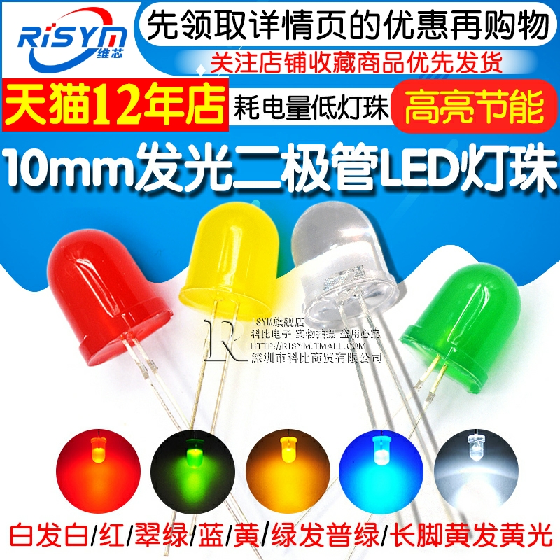 Super bright 10mm light-emitting diode LED lamp beads white red red light white emerald green yellow blue blue yellow green