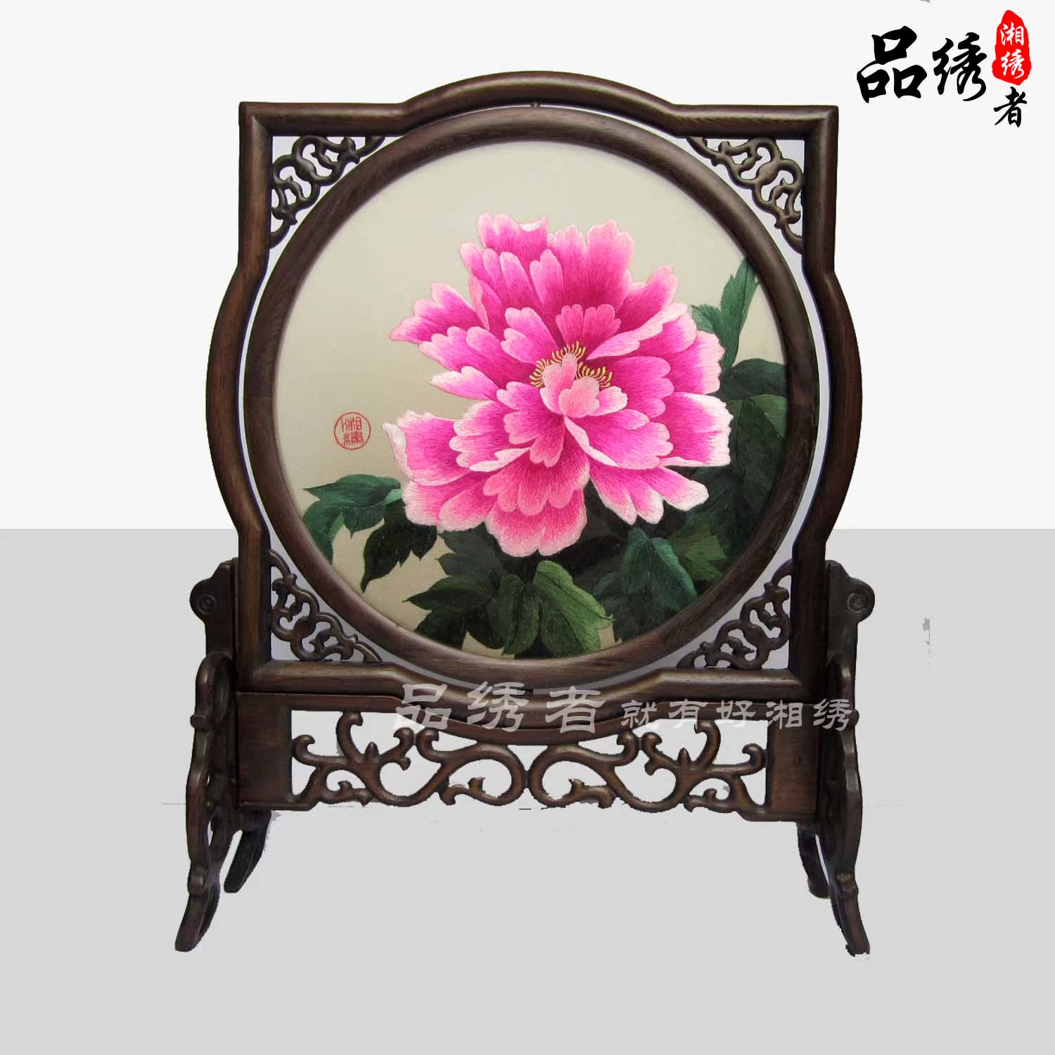Xiangembroidery Boutique Pure Handmade Embroidery Peony Bifacial Heteroembroidered Wedding Gift National Wind China Wind