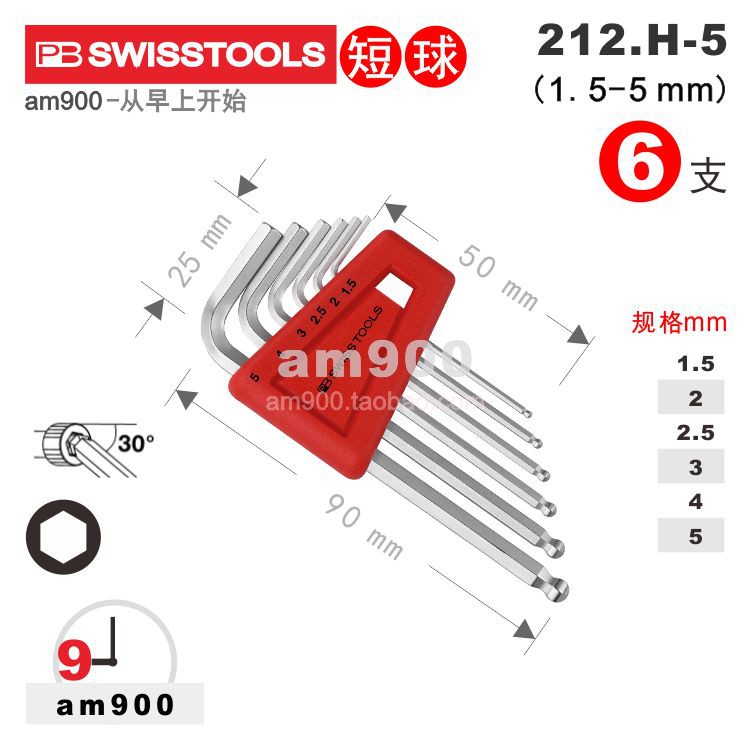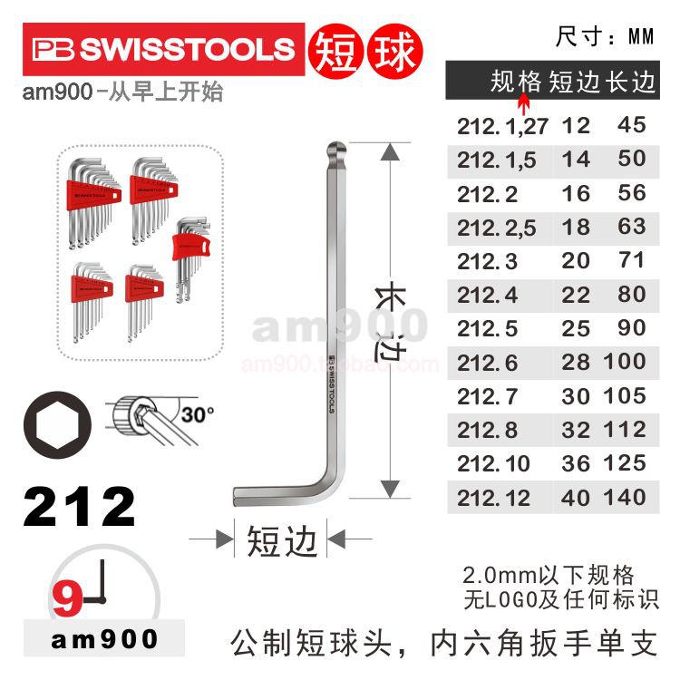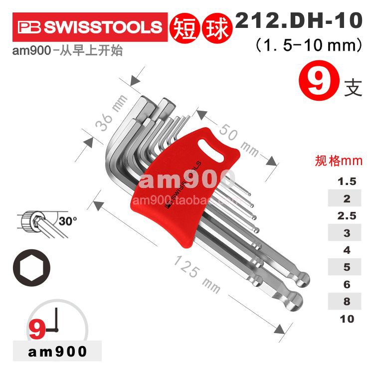 Swiss PB Inner Hexagon Wrench PB 212 H Import Suit Male short ball head PB 212 H-5 6 8 10