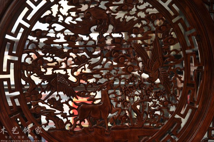 Home office partition screen Fu Lu Shou Xi floor seat screen plug-in screen solid wood hollow carving
