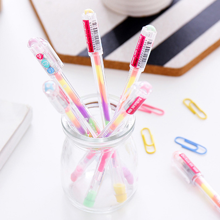 Japan-ROK Creative Stationery 6 Color All-in-one Watercolor Pen Discolored Pen Water Chalk DIY Handmade Album Color Pen